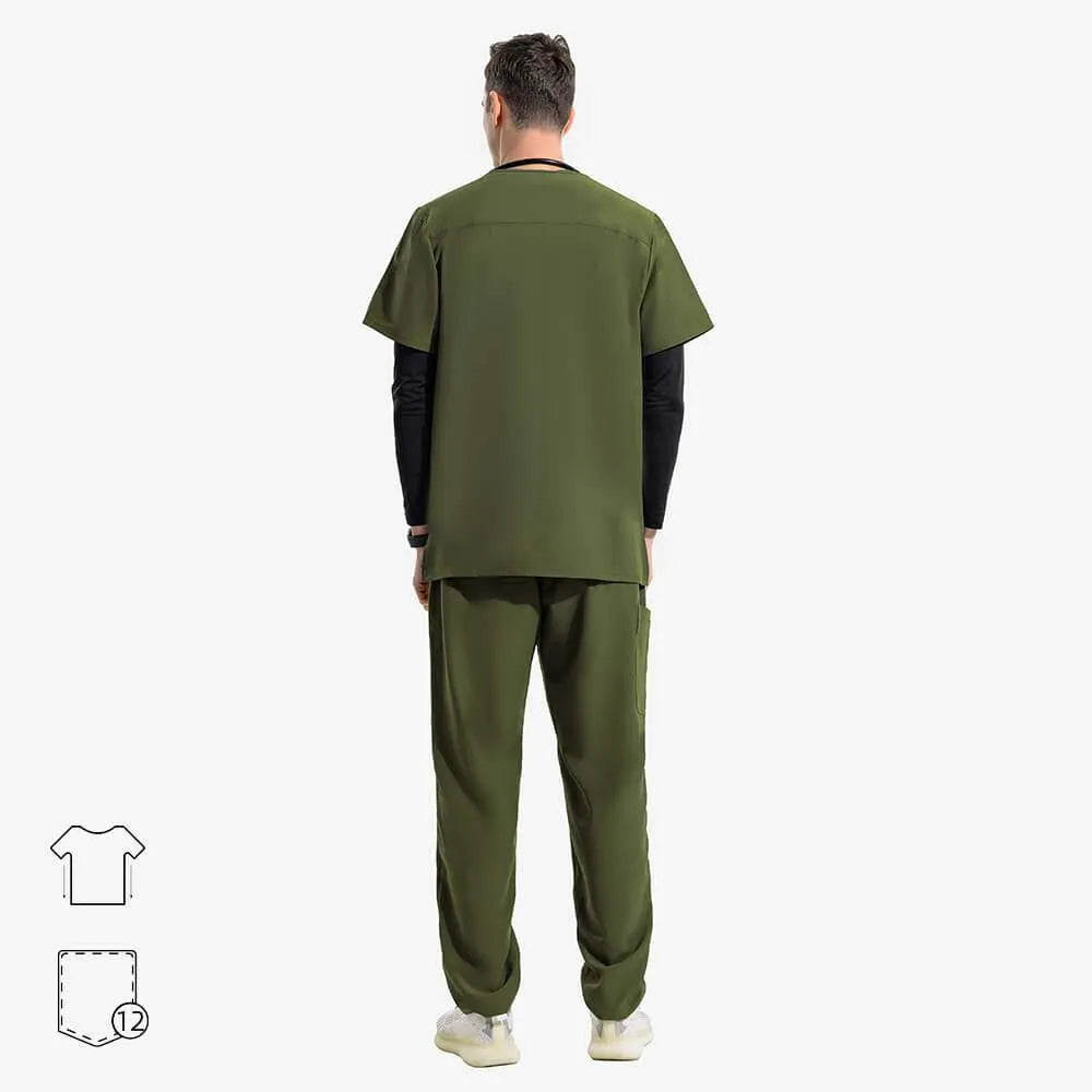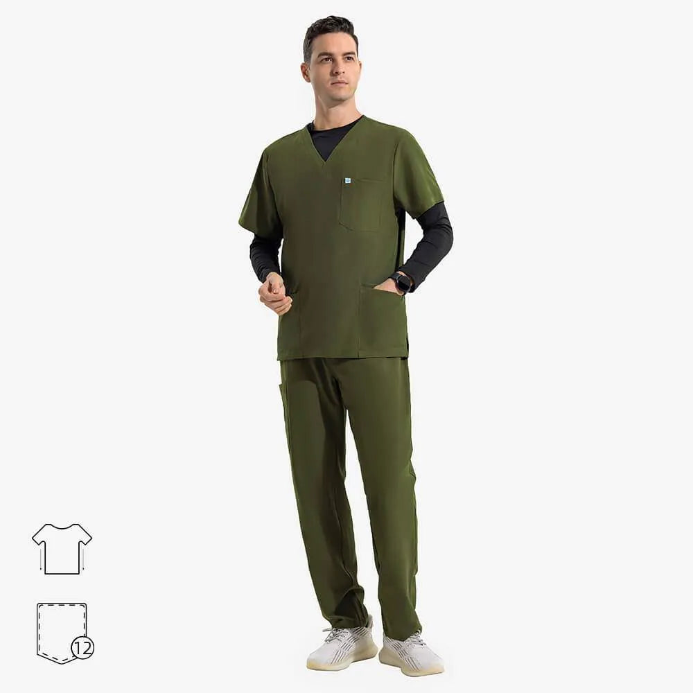 Este clásico conjunto médico para hombre cuenta con pantalones rectos versátiles que brindan una experiencia de uso cómoda y holgada. Mejora la eficiencia de su trabajo con múltiples bolsillos para un acceso conveniente a las herramientas.