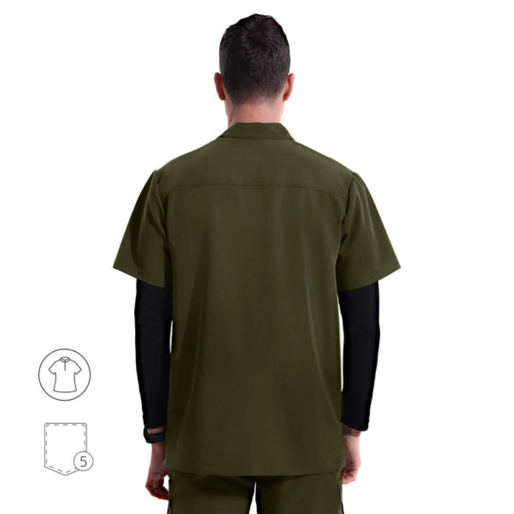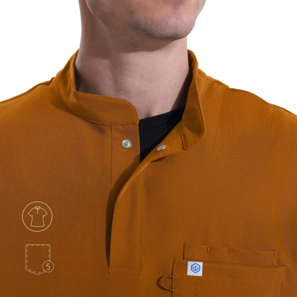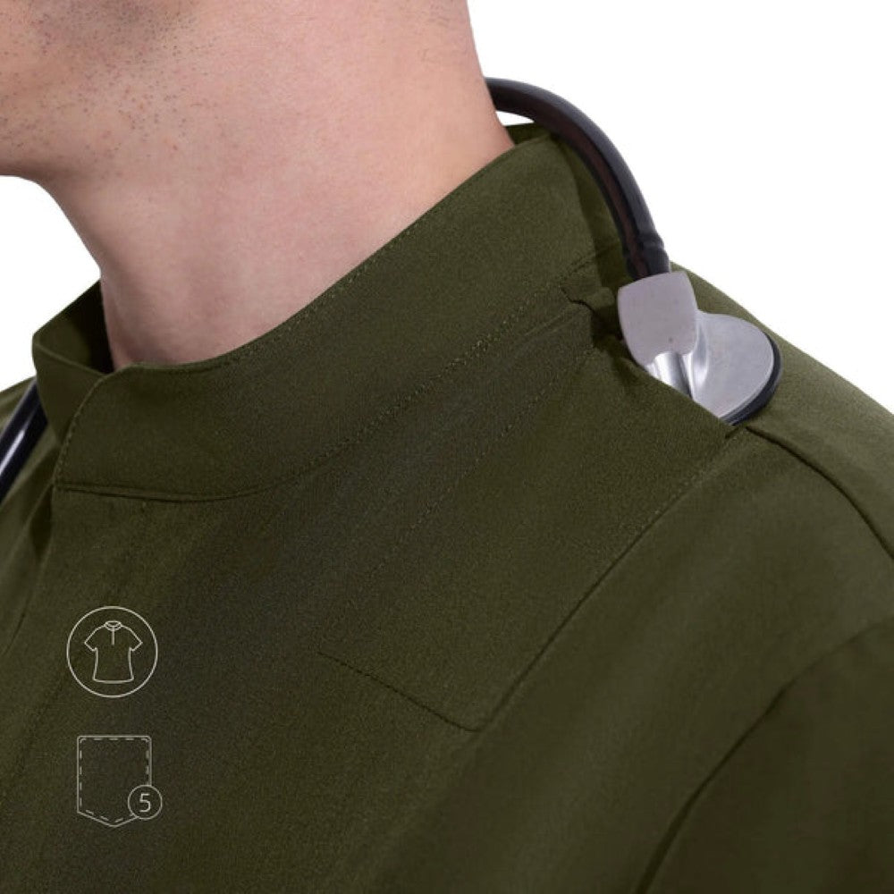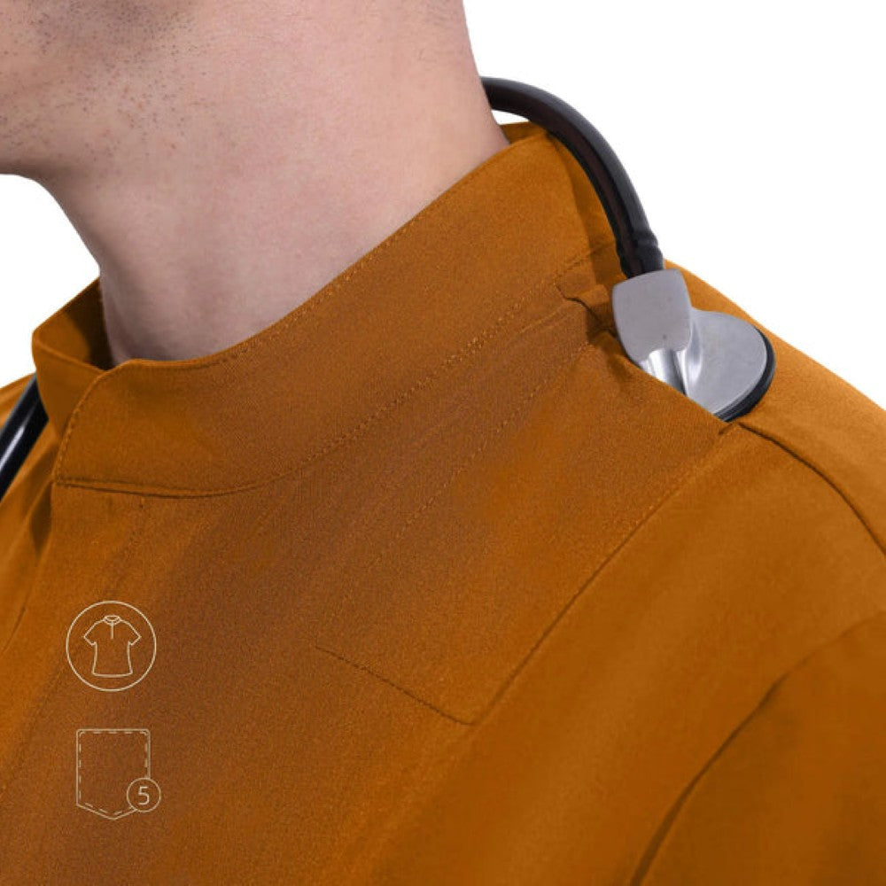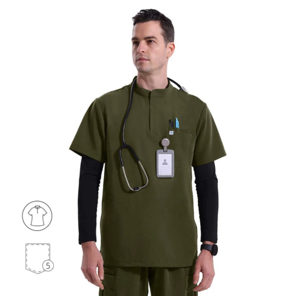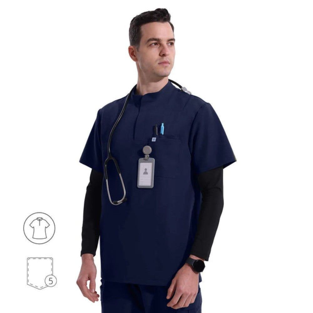 Un elegante cuello mandarín, un refinado frente abotonado y bolsillos cuidadosamente ubicados garantizan una apariencia refinada y eficiencia durante todo el día.