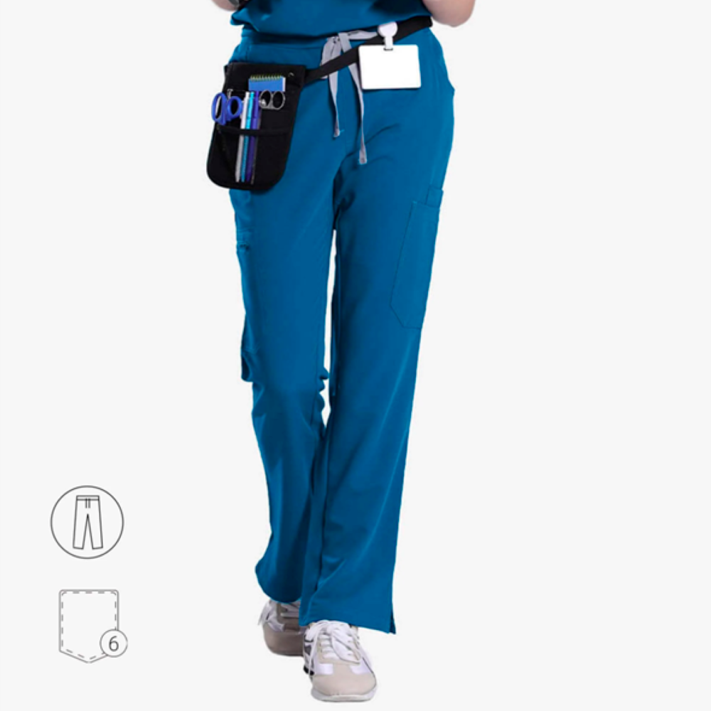 Este pantalón médico para mujer combina a la perfección el trabajo y la moda. Cuenta con ocho bolsillos de distintos tamaños y su silueta de pierna recta añade un toque de estilo. El diseño de línea lateral crea una apariencia elegante y estilizada.